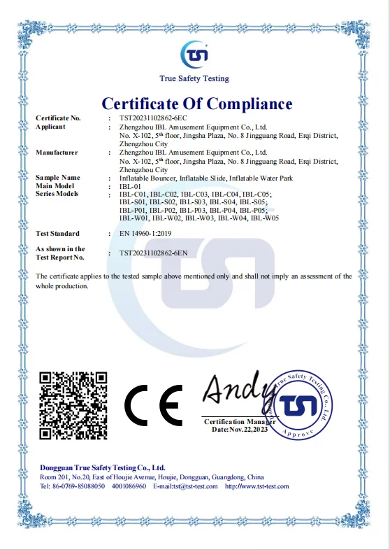 Zhengzhou IBL Amusement Equipment Co.,Ltd is a manufacturer of inflatable products with well-equipped testing facilities and strong technical force. We mainly produce inflatable bouncer, inflatable slide, bubble balls, air track, water games and so on. With a wide range, good quality, reasonable prices and stylish designs, our products are extensively used in amusement park, water park, advertising, events, tradeshow and other industries. Our products are widely recognized and trusted by users and can meet continuously changing economic and social needs. We welcome new and old customers from all walks of life to contact us for future business relationships and mutual success!